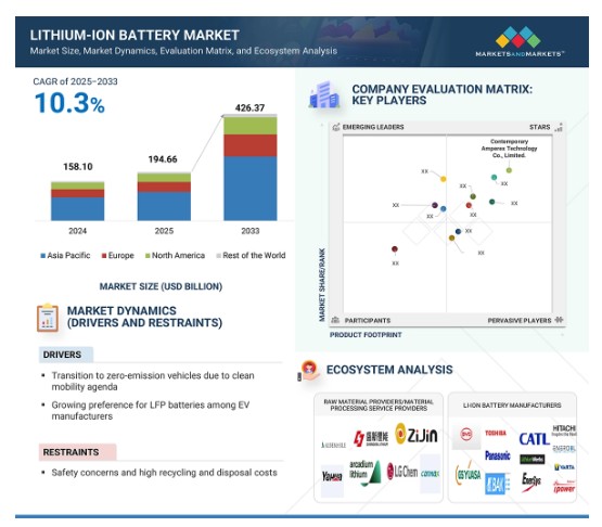 청정 에너지 전환을 위한 정책 지원, 전기차(EV) 보급 인센티브, 배터리 공급망에 대한 전략적 투자가 자동차, 전력망, 산업용 애플리케이션 전반에 걸쳐 리튬 이온 배터리의 대규모 배포를 주도하고 있다.
